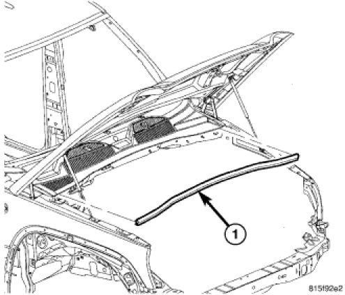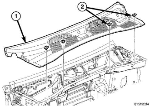 Position the cowl grille (1) and engage the nine clips to the bottom of the windshield.