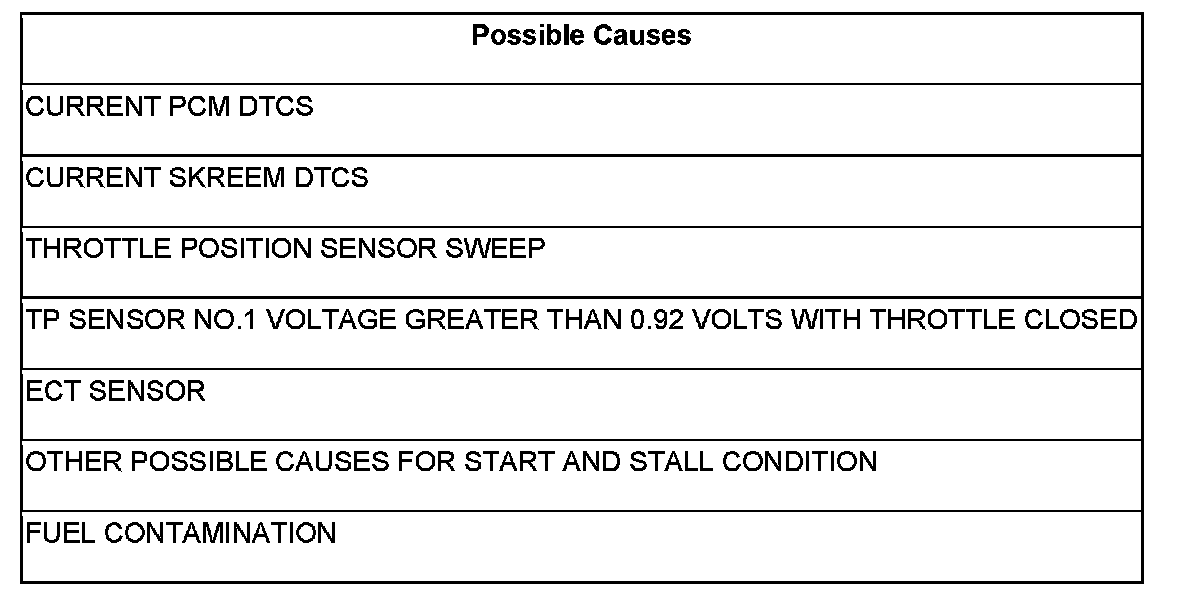 6. OTHER POSSIBLE CAUSES OF START AND STALL CONDITION