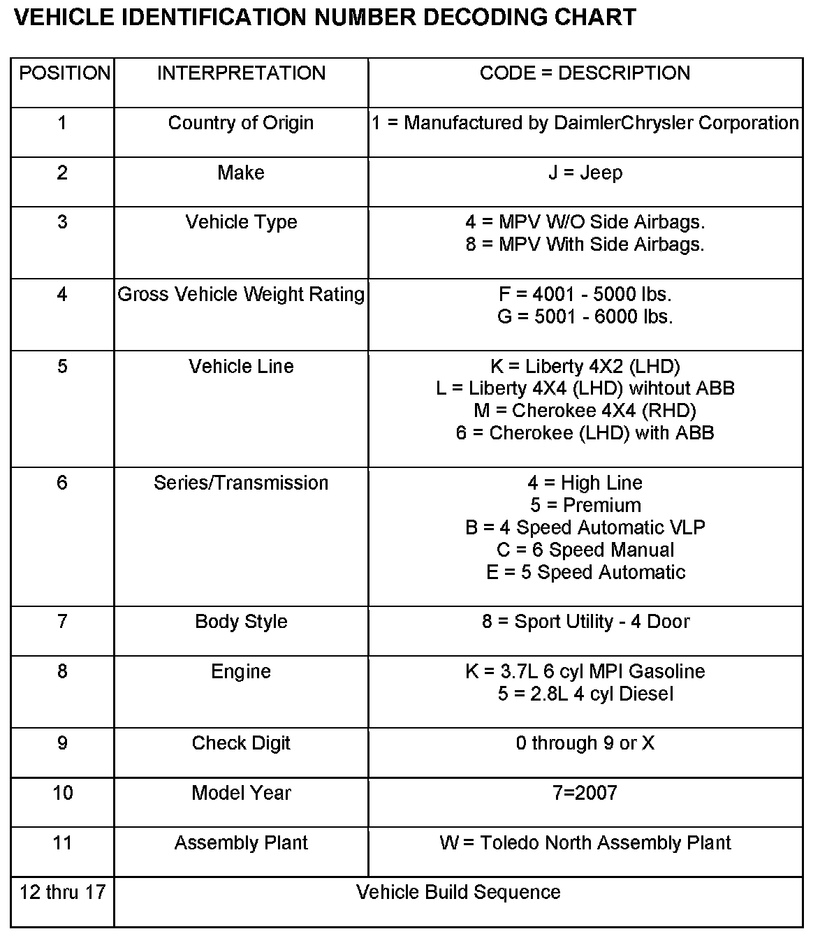 The Vehicle Identification Number (VIN) plate is located on the lower left A-pillar and is visible through the windshield. The VIN contains 17 characters that provide data concerning the vehicle. Refer to the VIN decoding chart to determine the identification of a vehicle.