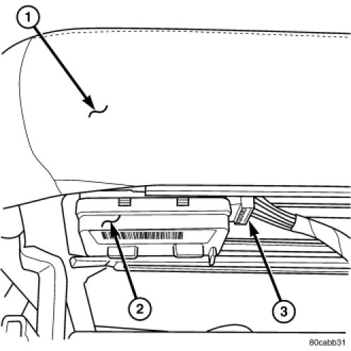 1. Connect the seat wire harness connector (3) to the connector receptacle on the side of the heated seat module (2).