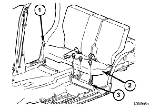 7. Install the front outer seat cushion leg bolts and tighten to 35 Nm (26 ft. lbs.)