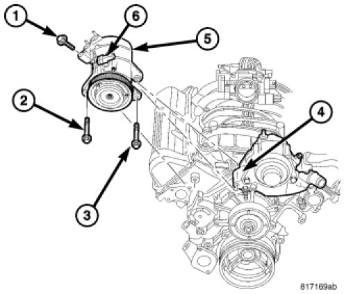 2. Position the A/C compressor onto the engine and mounting bracket (4).
