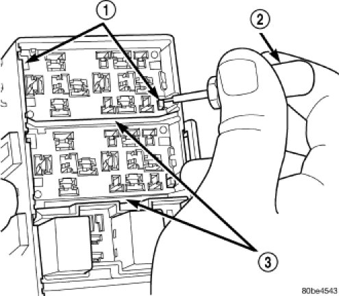 CAUTION: Proper care must be taken to be certain that the wiring and terminals from the faulty PDC relay cassette are installed in the correct terminal cavities of the replacement relay cassette. To prevent mistakes it is recommended that the wiring and terminals be removed from the faulty relay cassette one cavity at a time, repaired or spliced as necessary, then installed securely into the correct cavity of the replacement relay cassette. If you are not absolutely certain into which cavity a terminal should be installed, refer to Power Distribution for the location of complete circuit diagrams covering the PDC.