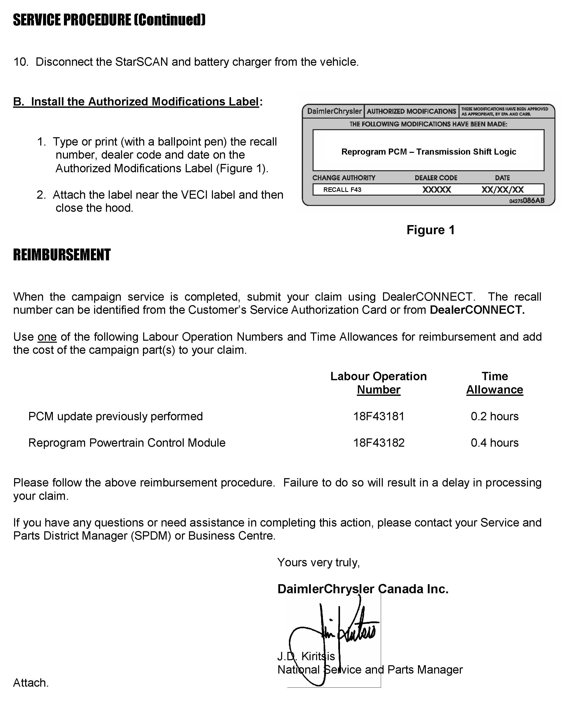 See your dealer notification letter for additional parts information.