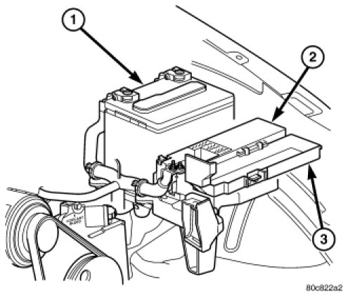 The ASD relay is located in the Power Distribution Center (PDC) (2). Refer to label on PDC cover for relay location.