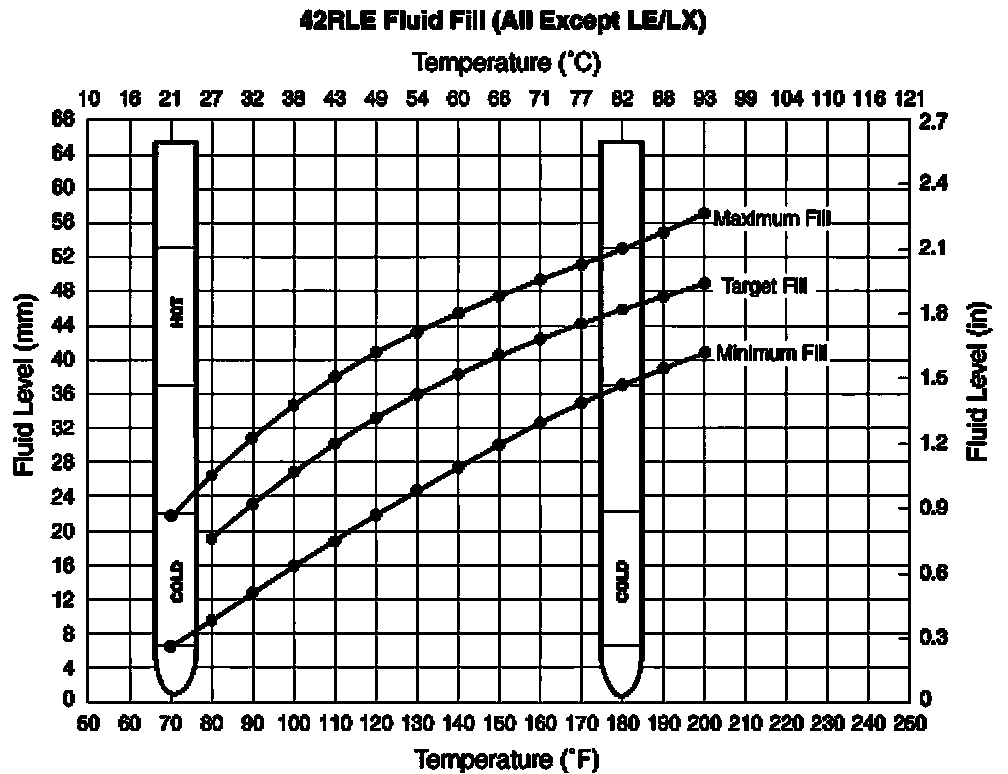 7. The transmission Oil Dipstick 9336 has indicator marks every 10mm. Determine the height of the oil level on the dipstick and using the height, the transmission temperature, and the Transmission Fluid Graph, determine if the transmission oil level is correct.