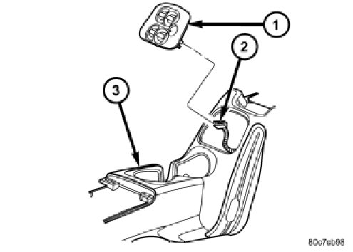 2. Install switch into opening in console (1) and press into place.