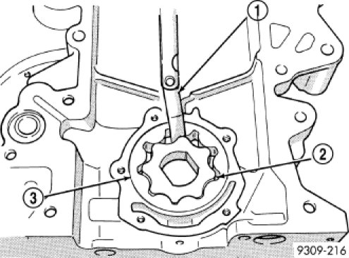 6. Install inner rotor into chain case cover. If clearance between inner and outer rotors is 0.203 mm (0.008 in.) or more, replace both rotors.