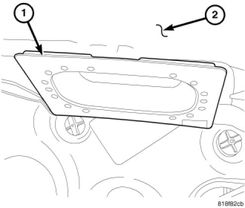1. Position the air inlet screen (1) to the passenger compartment side of the cowl panel (2) and engage the retaining tabs that secure the screen to the cowl. Make sure the retaining tabs are fully engaged.