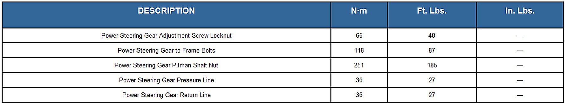 TORQUE SPECIFICATIONS