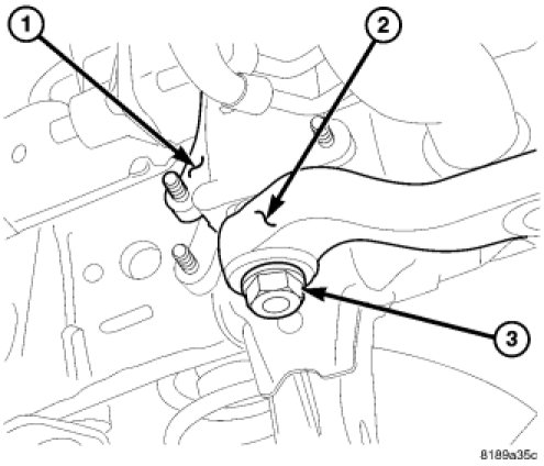 6. Tighten the bolt (2) at the frame bracket to 169 Nm (125 ft. lbs.).