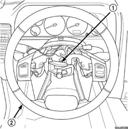 4. Remove the steering wheel (2) with puller C-3894-A (1) or an appropriate puller.
