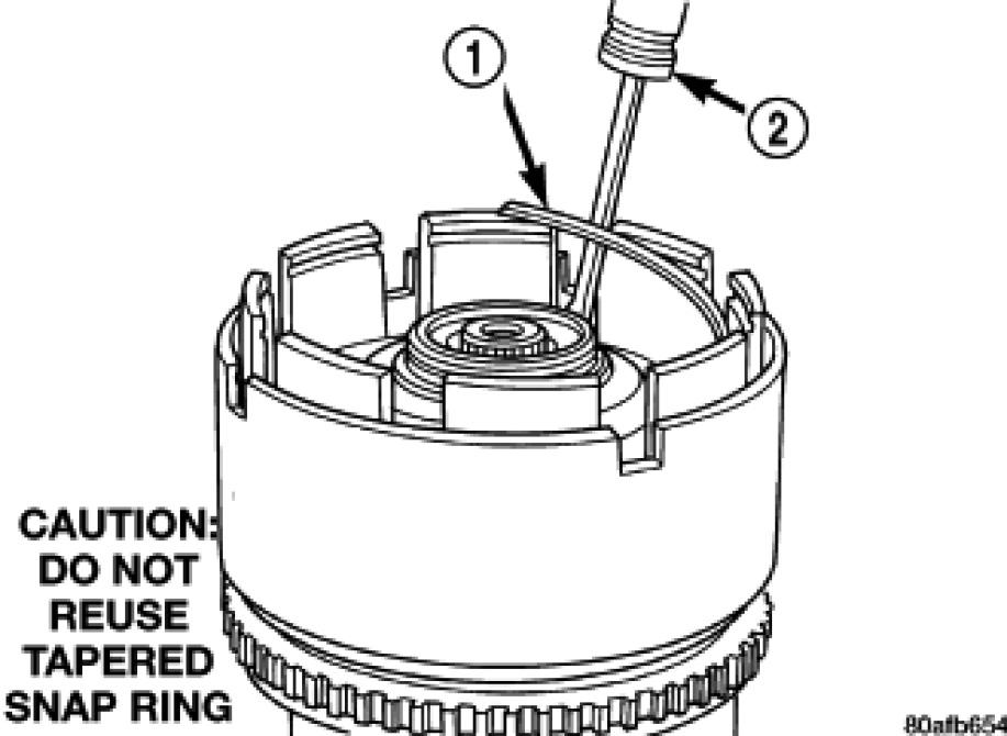 16. Install the UD/OD tapered snap ring (1).