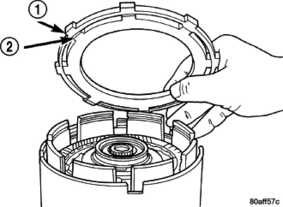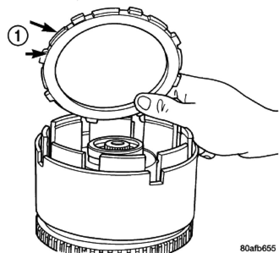 26. Install the OD/Reverse reaction plate (1) with large step down (towards OD clutch pack).