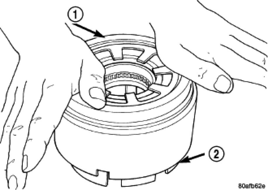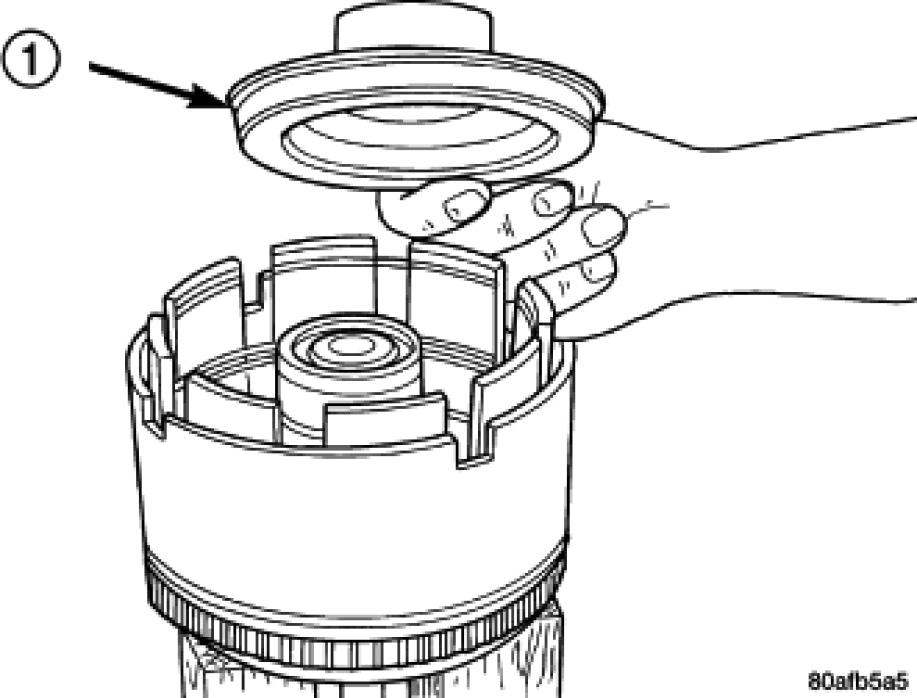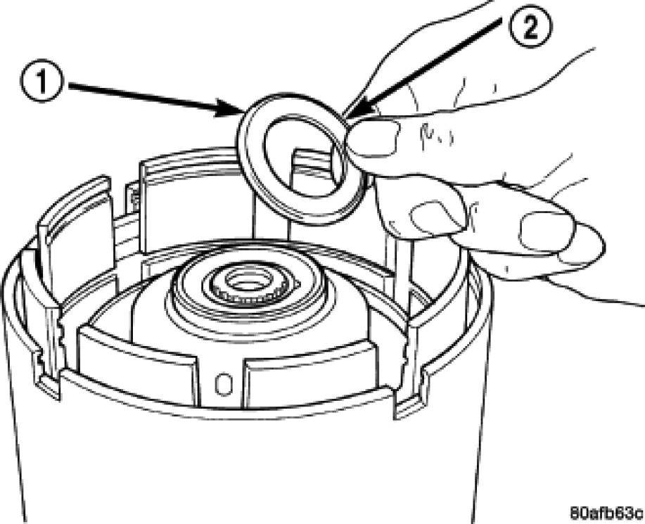 5. Install the OD/Reverse piston (1) assembly to the input clutch retainer (2).