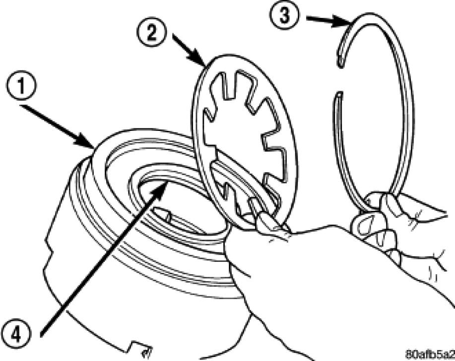17. Seat tapered snap ring (1) to ensure proper installation.