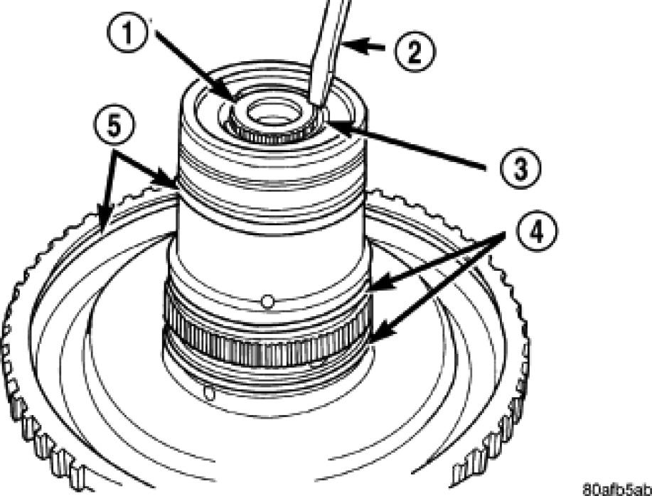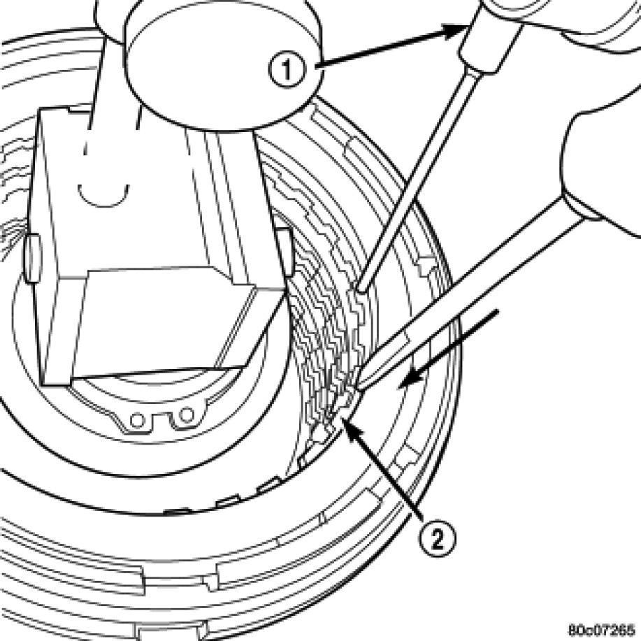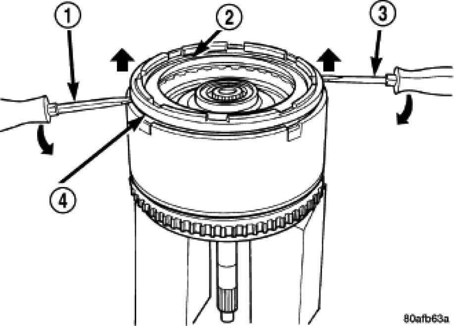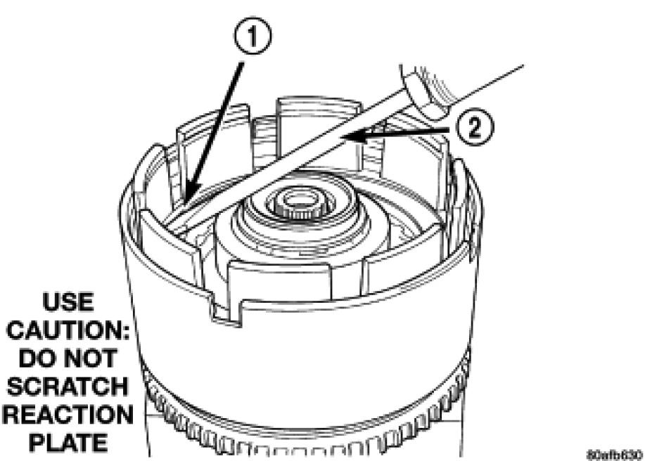 34. Pry up reverse reaction plate (4) to seat against snap ring (2).