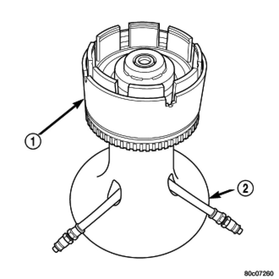 21. Apply 30 psi (206 kPa) to the underdrive hose on Pressure Fixture 8391 and measure UD clutch clearance. Measure and record UD clutch pack measurement in four (4) places, 90� apart.