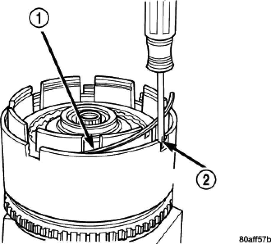 NOTE: Snap ring ends must be located within one finger of the input clutch hub. Be sure that snap ring is fully seated, by pushing with screwdriver, into snap ring groove all the way around.