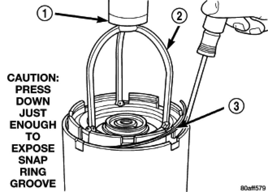 CAUTION: Compress return spring just enough to install snap ring.