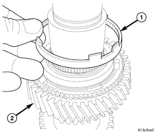 6. Install synchronizer blocker ring (1) on second gear (2).