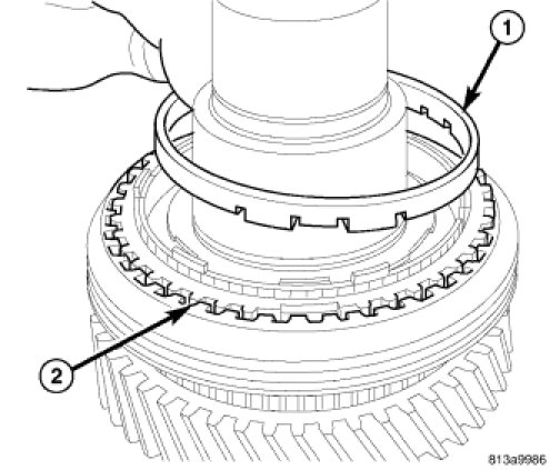 25. Install sixth gear synchronizer friction ring (1) on sixth gear (2).
