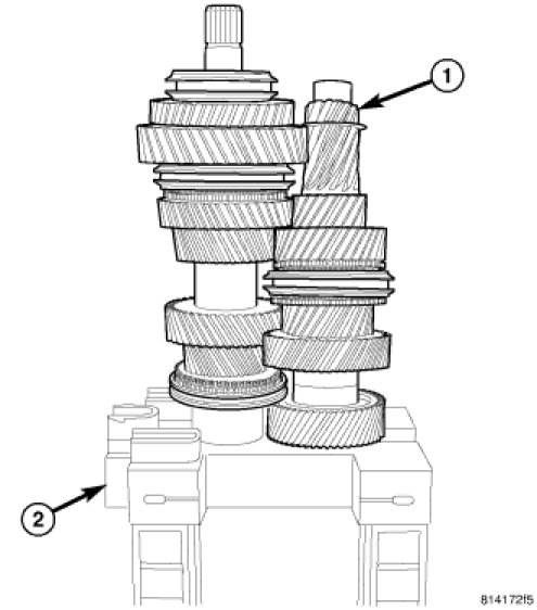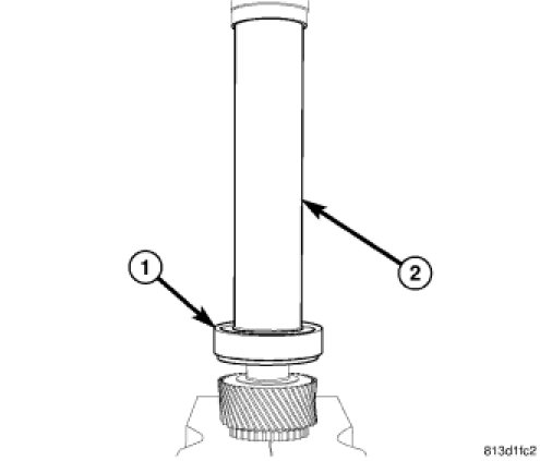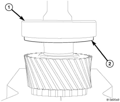 CAUTION: A bearing heater is used to assemble first gear thrust washer (1) and reverse gear bearing race (2). Use only a bearing heater/hot plate and follow manufacture's instructions. Heat components to 100 - 177 Celsius (212� Min - 350� Max Fahrenheit). Never use an open flame to heat components. Never leave components on heater for an extended amount of time. If component is discolored after heating, the component has been overheated and must not be used. Failure to follow these instructions will result in component damage.