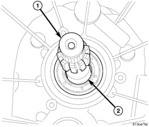 3. Install second gear (1) on bearing (2).