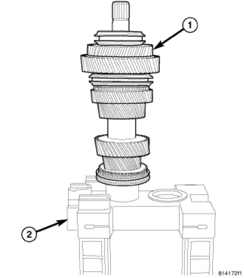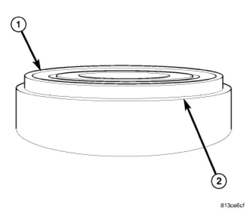1. Install input shaft bearing (1) on input shaft with the bearing retainer lip (2) facing fifth gear.