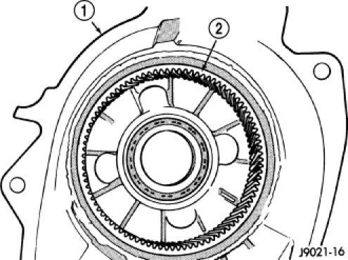 Inspect annulus gear (2) condition carefully. The gear is only serviced as part of the front case. If the gear is damaged, it will be necessary to replace the gear and front case as an assembly. Do not attempt to remove the gear.