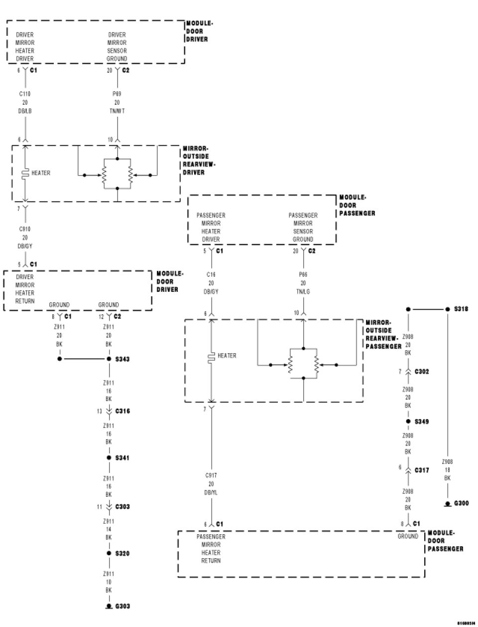 - Repair the (C16) Passenger Mirror Heater Driver circuit for a short to the (C917) Passenger Mirror Heater Return circuit.