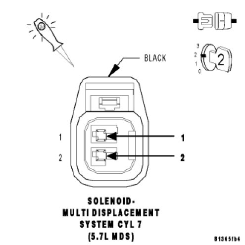 - Verify that there is good pin to terminal contact in the Solenoid and the Powertrain Control Module connectors. If OK, replace the MDS Solenoid No.7.