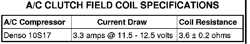 b. If the A/C clutch field coil current reading is above specifications, the coil is shorted and must be replaced.