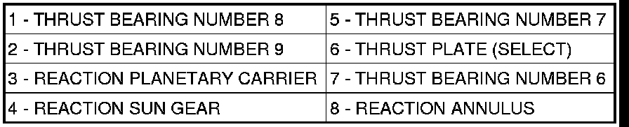 28. Remove the rear selective thrust plate (6) and number 6 thrust bearing (7) from the reaction annulus (8).