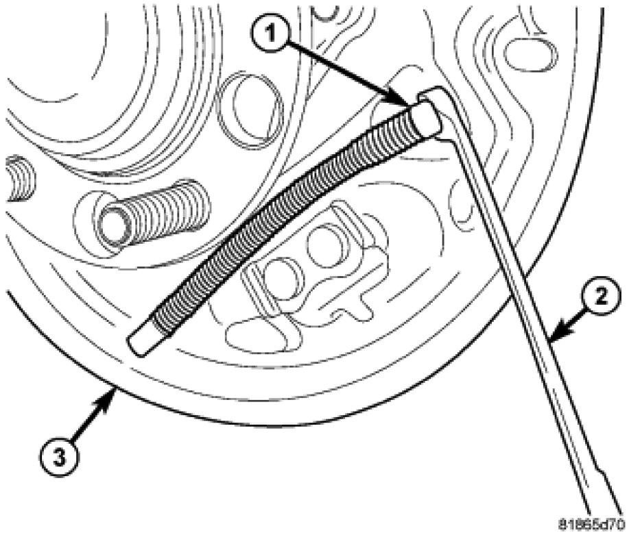 7. Remove the wheel cylinder attaching screws (1).