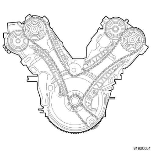 6. With the locking pins installed, turn the crankshaft clockwise until the timing chain is completely tight. If the marks on the crankshaft damper exceed 11 degrees, replace the timing chain.
