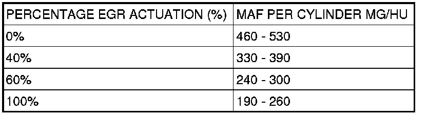 Refer to the chart and compare each of the EGR actuations and the expected MAF readings for each actuation.