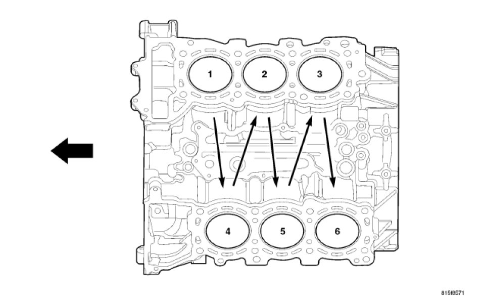 Cylinders are numbered front to back, beginning with the right bank. The right bank cylinders are numbered 1, 2, 3. The left bank cylinders 4, 5, 6 The injection order of the engine is 1-4-2-5-3-6.
