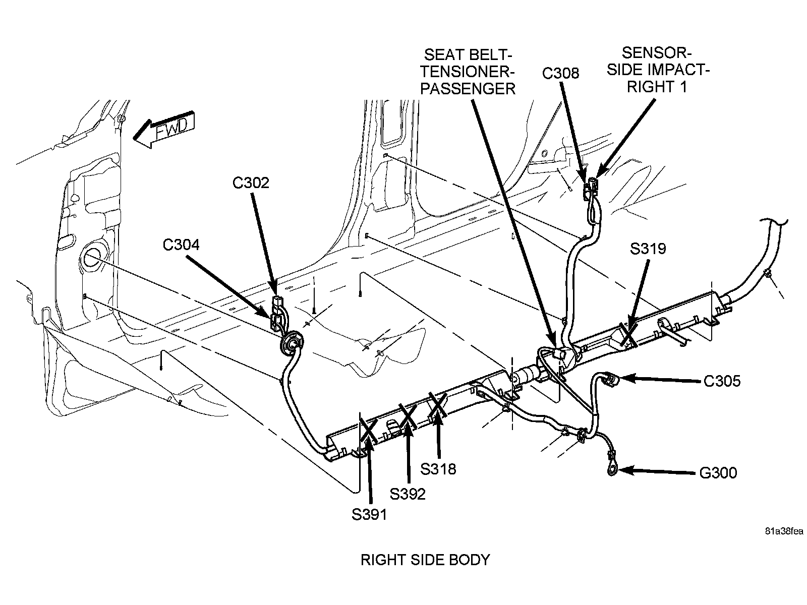 2 R16 20BR/LG RIGHT SIDE IMPACT SENSOR 1 GROUND