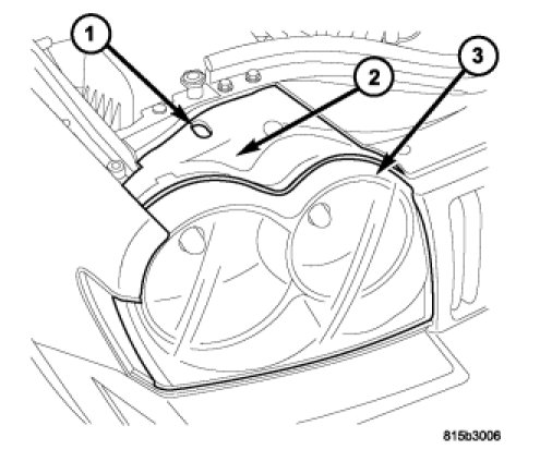 NOTE: Due to the linear nature of the headlamp cutoff, a properly aimed low beam headlamp will project the top edge of the high intensity pattern on the alignment screen from the horizontal line to 50 millimeters (2 inches) below the horizontal line for domestic market vehicles, or to 104 millimeters (4.125 inches) below the horizontal line for export market vehicles. No horizontal (right/left) adjustment is required for this headlamp beam pattern in domestic market vehicles. Export market vehicles have a second horizontal (right/left) adjustment screw provided, which is accessible through a clearance hole on the inboard side of the front lamp unit cover. The high beam pattern will be correct when the low beams are properly aimed.