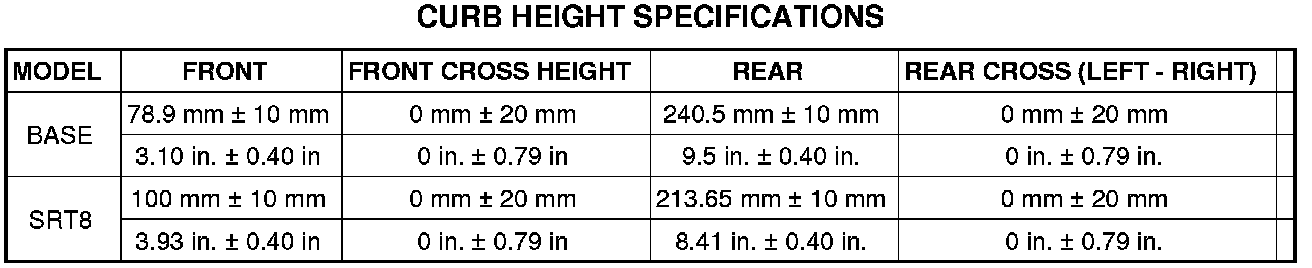 5. Compare the measurements to the specifications listed in the following Curb Height Specifications chart.