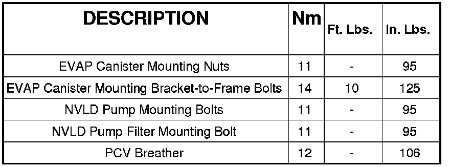 Evaporative Emissions System: Specifications