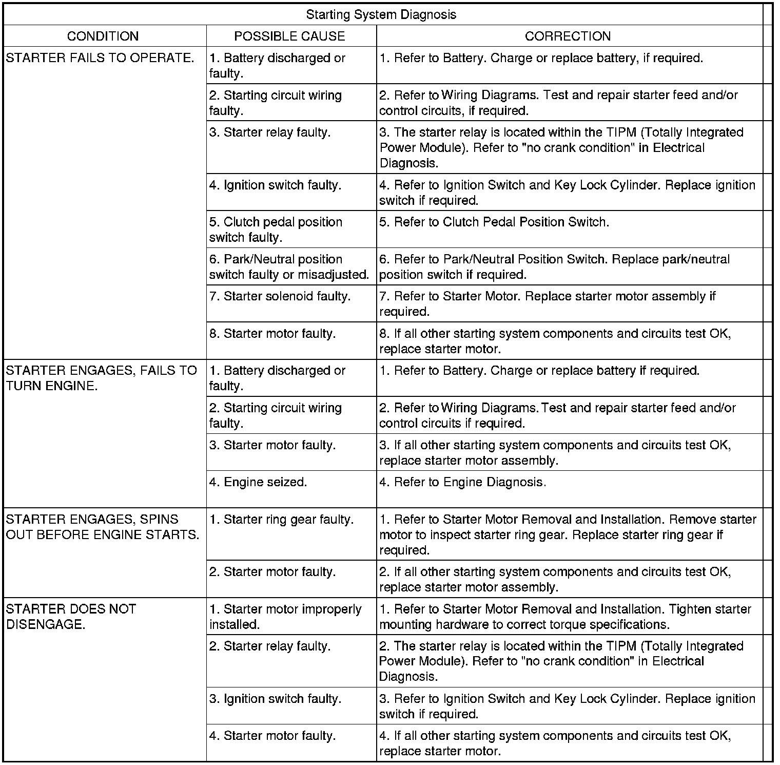 - Starter Relay - Refer to Starter Relay The starter relay is located within the TIPM (Totally Integrated Power Module). Refer to "no crank condition" in 9 - Engine - Electrical Diagnosis.