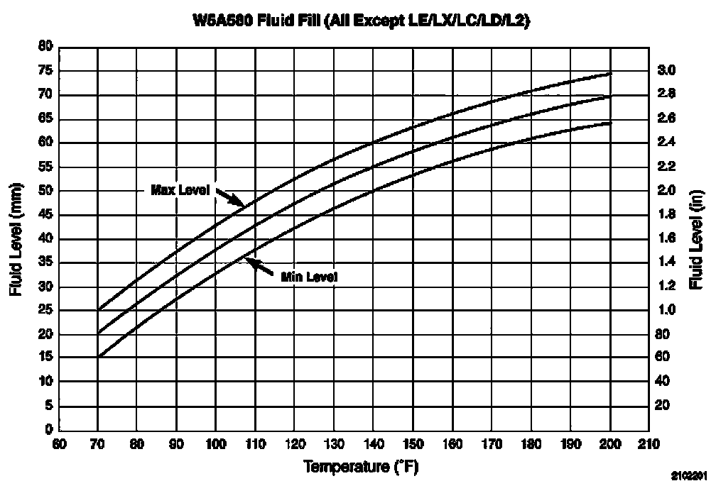 7. With the transmission in "P", determine the height of the oil level on the dipstick and using the height, the transmission temperature, and the Transmission Fluid Graph, determine if the transmission oil level is correct.