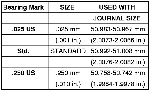 8. If bearing-to-journal clearance exceeds the specification, determine which service bearing set to use, using the chart above.