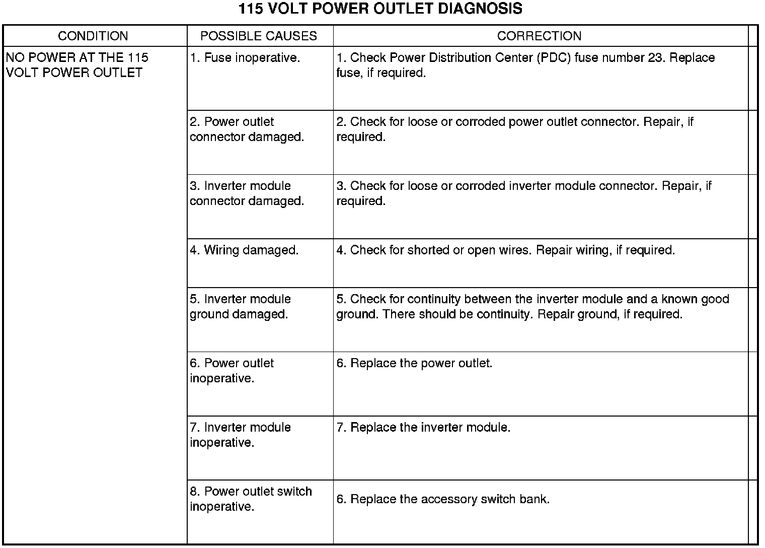 Auxiliary Power Outlet: Testing and Inspection