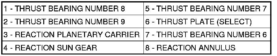 28. Remove the rear selective thrust plate (6) and number 6 thrust bearing (7) from the reaction annulus (8).