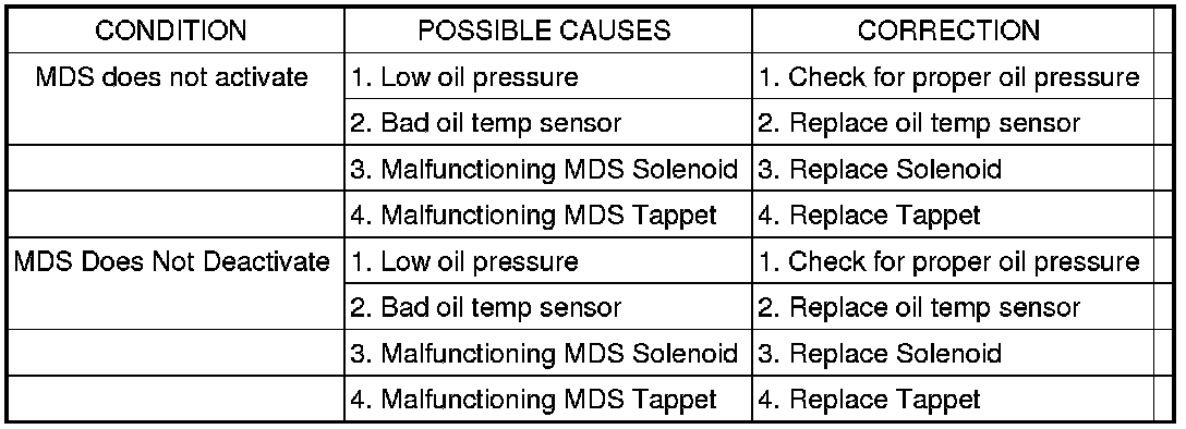 MDS SOLENOIDThe Multi Displacement System has the following detectable issues: