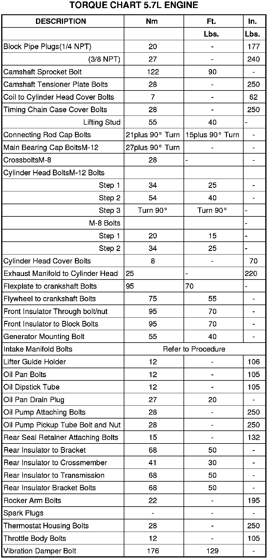 Torque Specifications