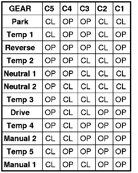 There are many possible combinations of open and closed switches (codes). Seven of these possible codes are related to gear position and five are recognized as "between gear" codes. This results in many codes which should never occur. These are called "invalid" codes. An invalid code will result in a DTC, and the TCM will then determine the shift lever position based on pressure switch data. This allows reasonably normal transmission operation with a TRS failure.